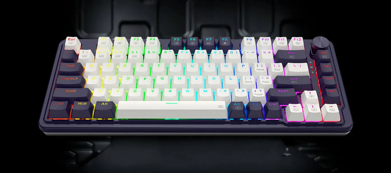 Mira por dentro el secreto de su tecleo: switches Redragon Red, montaje "gasket" y capas de amortiguación. Todo pensado para que cada pulsación sea suave, silenciosa y perfecta para largas sesiones sin molestias.
